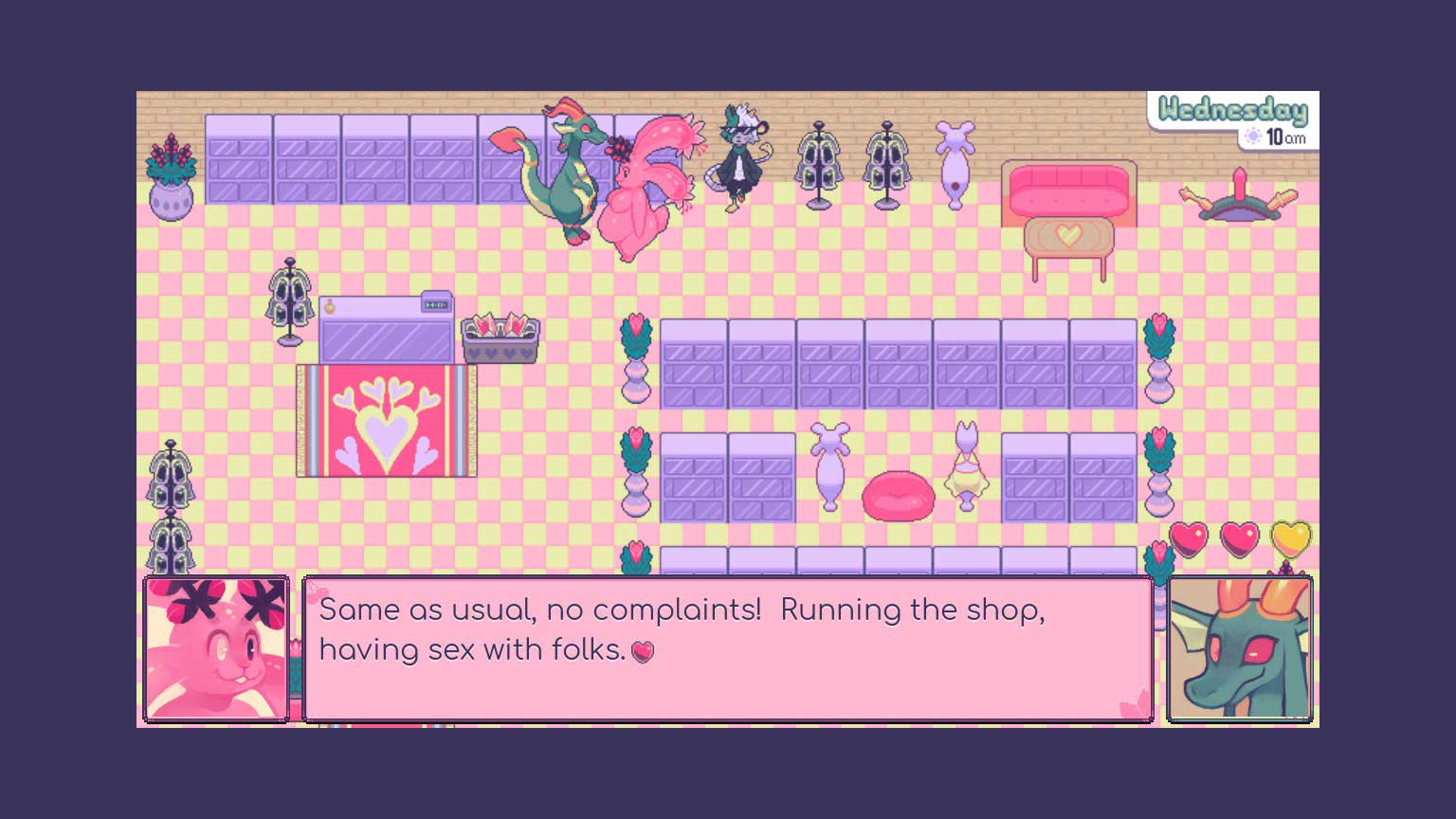 Wait for a sale. This game is what I’d call a gem, a unique indie experience that deserve a place in the spotlight. It’s a lighthearted game that explores sexual topics with a not-so-sexual tone. . . I’m not sure how to describe it. I wouldn’t recommend this title to someone lookin’ for a creamy time. Rather, I’d recommend it to someone who enjoys boobies, and slice-‘o-life gameplay.