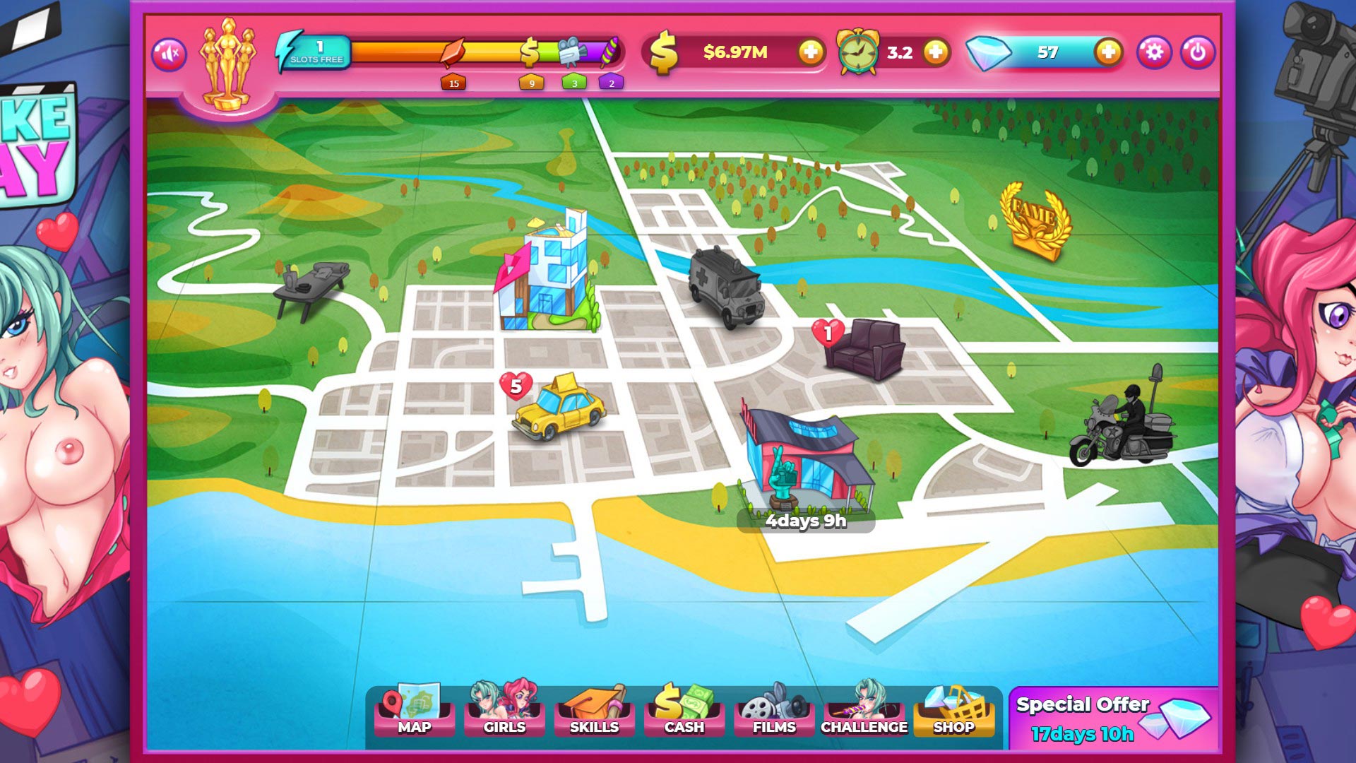 You’re a fly cab guy. One day, opportunity fell right into your lap β quite literally. A buxom woman fell lips-first where the sun don’t shine, and she liked what she found. That’s when you realized that you could make bank giving girls a ride they won’t forget, before taking them home in your cab β and that’s pretty much the story. You get into womens’ pants and sell their nudes.