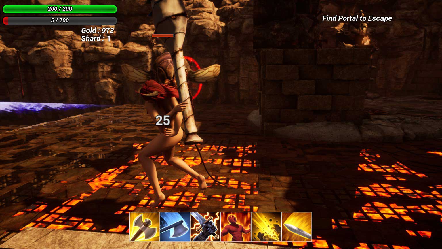 Oh wait, I’m supposed to talk about the actually gameplay, the “fun” part. Spam “attack” and roll. Actually, the only time you need to roll is against boss enemies, since you can’t stun-lock them to death. Mash number keys to spam powers, and win again and again. You can collect currency to unlock a “Hentai Book”, which opens a small gallery of lewd images, and you can buy a new weapon. A new weapon. There’s also a “Photo Mode”, where you’re supposed to be able to navigate each stage without the bother of enemies, so you can take pictures. Problem being, Photo Mode is a lie.