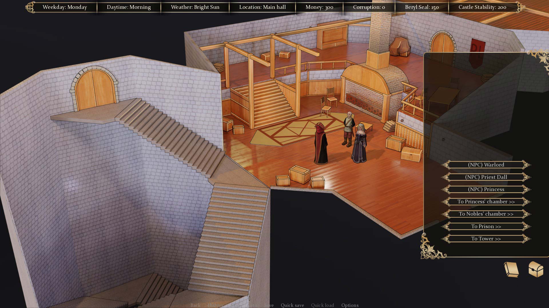 This game plays-out like a very interactive choose-your-own adventure book. You go from room to room talking to NPCs, catering to their needs and extracting useful information. There are a few dungeon-crawler-like screens, where you have the option to travel in cardinal directions and interact with characters and the environment. Throughout the game you will collect a wide variety of items, essential for progression and their usage left to the player’s judgement (or misjudgement.) You must carefully manage money and the kingdom’s resources, to prevent losing the game (if you don’t get yourself killed beforehand).